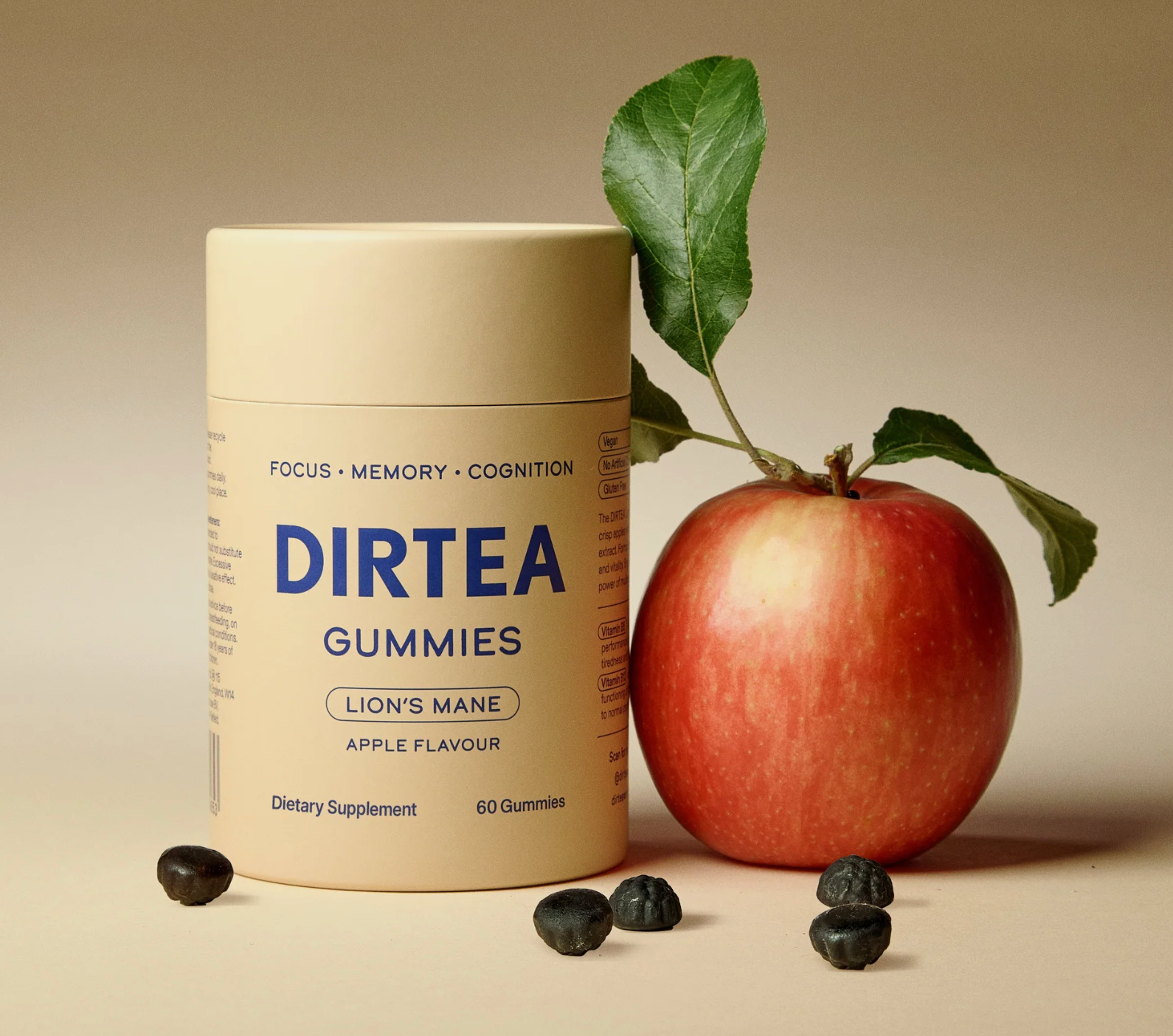 DIRTEA Lion’s Mane Gummies, with zero sugar and natural flavours, help you feel focused naturally.