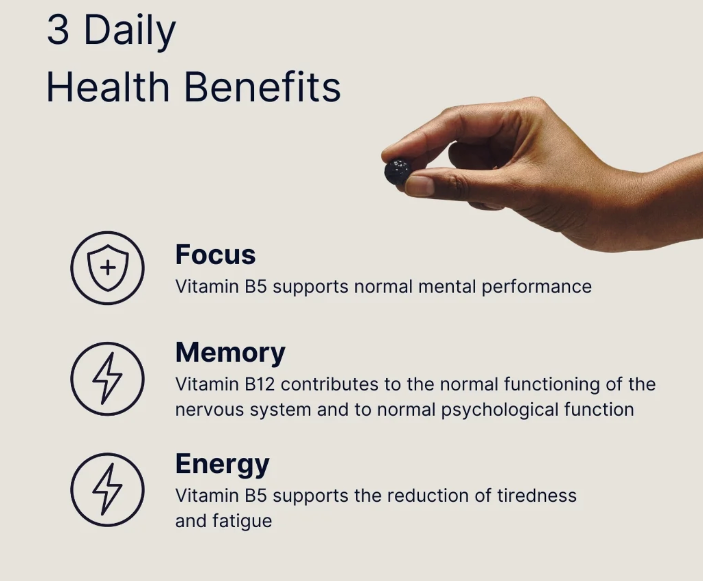 Good for: Packed with 2,400mg of Lion’s Mane and 100% of your daily recommended intake of Vitamins B12 and B5, offering powerful support for cognitive function and memory while helping to reduce tiredness and fatigue.